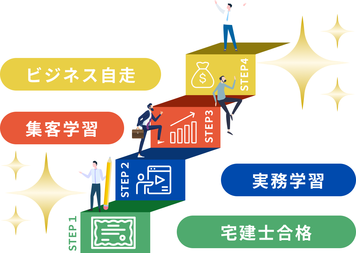 「1人で稼げる宅建士」を育成。 学習ステップ